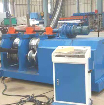 Bingkai peralatan diproses oleh pelat baja A3, setelah perawatan penuaan, struktur 3-roller, 1 atas dan 2 bawah, roller bawah mengadopsi struktur tetap,roller atas mengadopsi pengaturan gerakan slider, dan 3 set drive turbine box didorong oleh motor untuk mengatur atas dan bawah The turbine box terhubung dengan batang penghubung untuk memastikan sinkronisasi 3 set kotak,dan 3 piring dinding independen terhubung oleh poros untuk memastikan paralelisme dari seluruh mesin. Diameter poros roller adalah 110mm. Ada dua set cetakan di kiri dan kanan, satu untuk busur dalam dan satu untuk busur luar, dan satu set motor utama 15KW.Hal ini didorong oleh ZQ500 pengurangan, yang menggerakkan poros bawah kiri dan kanan melalui gigi.Modul gigi adalah 10m, satu untuk masing-masing kiri dan kanan.Produk diproses melalui konsol operasi.